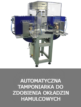 Ta automatyczna maszyna do tampondruku została zaprojektowana do nadruku na okładzinach hamulcowych do ciężarówek. Istniejący już u klienta taśmociąg przesuwa okładziny do maszyn drukujących, które są umieszczone po lewej i prawej stronie taśmociągu. Gdy wykryta zostanie okładzina hamulcowa, system zaciskowy podnosi ją z taśmociągu. Po podniesieniu okładzina jest nadrukowywana z obu stron, a następnie umieszczana z powrotem na taśmociągu i przesuwana dalej. Linia ta została wyposażona w dwie maszyny do tampondruku TTN Next Generation 200 EKO, które zostały przebudowane, aby mogły drukować w poziomie. Maszyna może nadrukować około 800 okładzin na godzinę. |