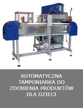 Ta automatyczna maszyna do tampondruku oparta jest na modelu TTN 600 EKO 6 TC, jest przeznaczona do nadruku na plastikowych artykułach do pielęgnacji dzieci, takich jak termometry, grzebienie, mydelniczki, szczotki, sztućce i nocniki. Produkty są ręcznie ładowane na liniowy taśmociąg, gdzie mogą być wstępnie traktowane plazmą, a następnie drukowane. Po nadruku taśmociąg obraca produkty i przesuwa je z powrotem do stacji wyładunkowej. Opcjonalnie maszyna może być obrócona o 180 stopni, a wahadłowiec 6-kolorowy obsługuje większe przedmioty. Maszyna drukuje około 900 produktów na godzinę w 6 kolorach. |